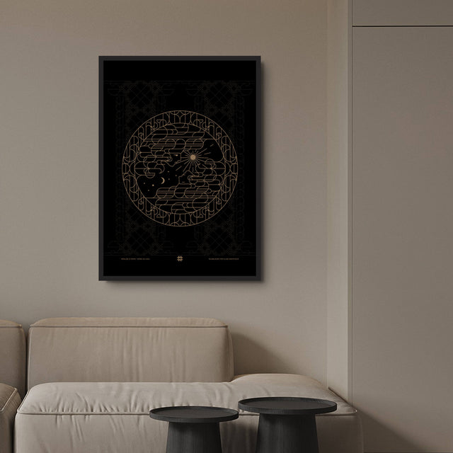 Muralnoir envisions the universe as a boundless black mural where the tapestry of life intertwines with miracles, giving rise to an endless array of golden patterns.